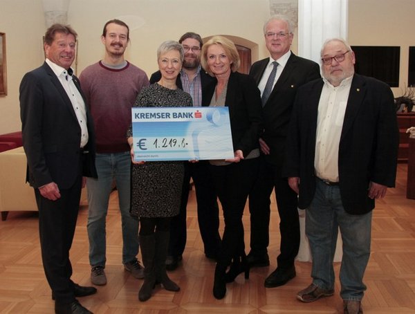 Doris Denk (Bereich Bildung), Mag. Hannes Zimmermann (Kremser Immobiliengesellschaft); Architekt DI Martin Wagensonner, Elisabeth Reich (beide Architekturbüro YES WE PLAN) , Margit Seif (Leitung Kindergarten Mitterau), Bürgermeister Dr. Reinhard Resch, Bildungsstadträtin Sonja Hockauf-Bartaschek; Werner Lint u. Thomas Heind (beide Fa. Held&Francke) und Mag. Georg Braunschweig (Leiter Amt für Bildung) mit den Kindergartenkindern Valentina und Leoni.